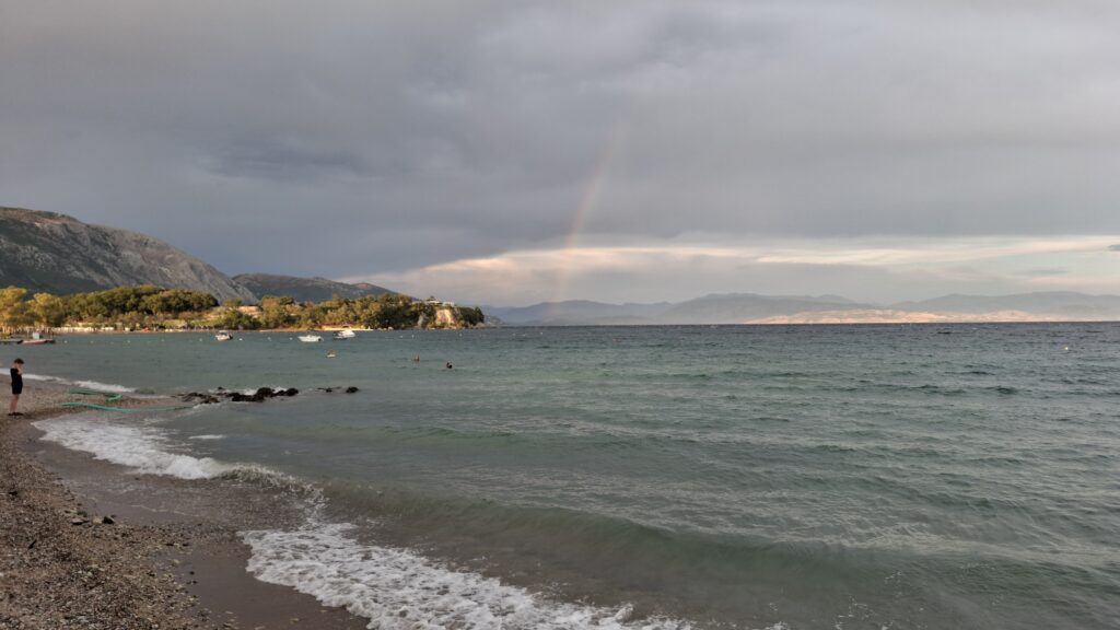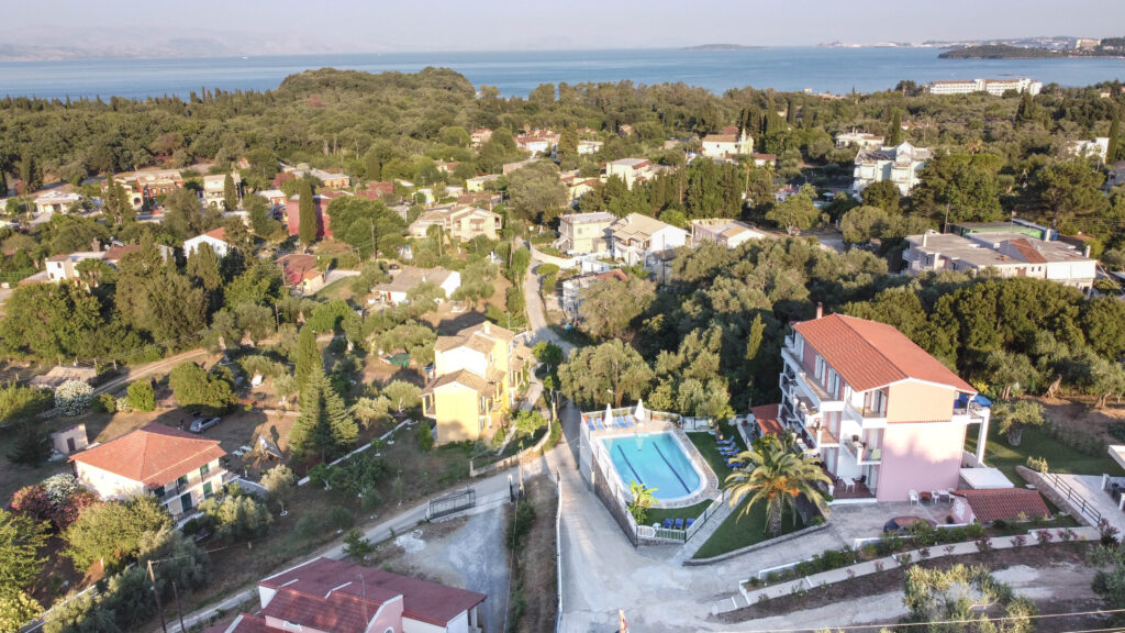 Dassia is a resort, on the east coast of Corfu, approximately 13km north of the capital Kerkyra. This means it’ll take around 20 minutes to drive from the town