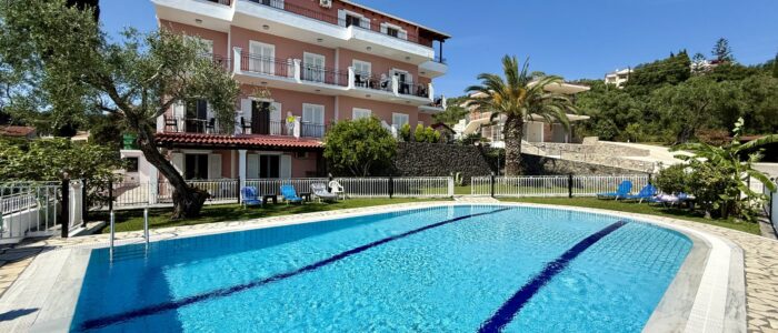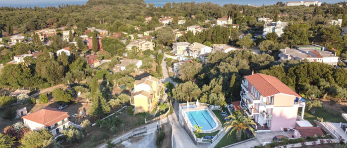 Dassia is a resort, on the east coast of Corfu, approximately 13km north of the capital Kerkyra. This means it’ll take around 20 minutes to drive from the town