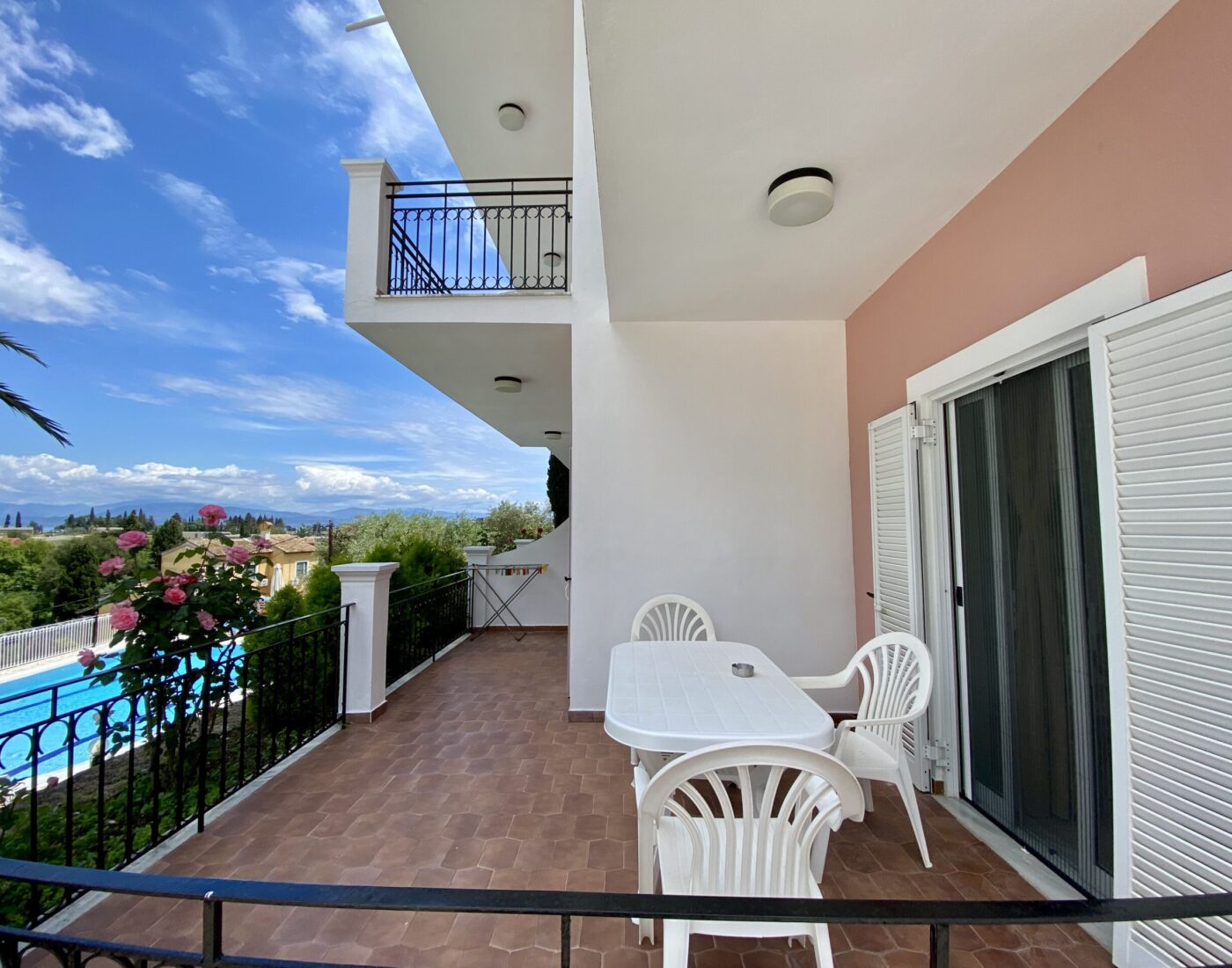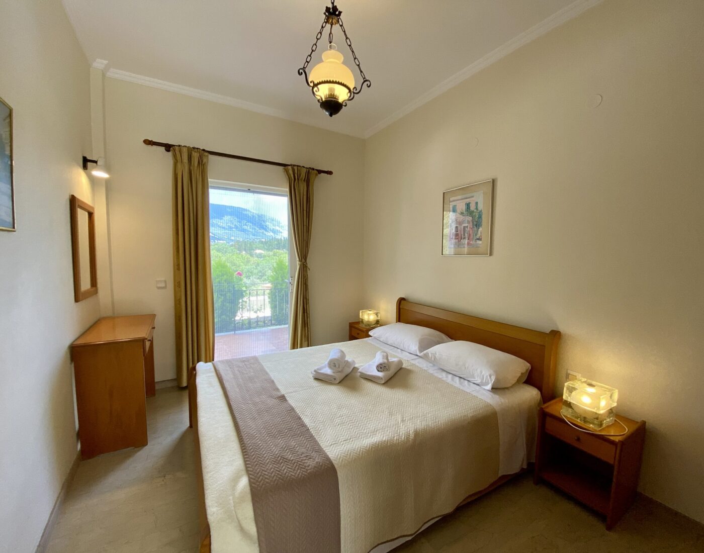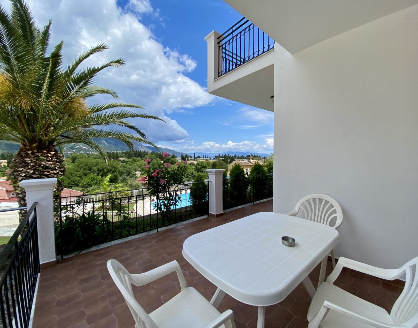 They are air-conditioned and have either a large double bed or 2 single beds and 2 sofa beds that can accommodate 1-4 people. They are air-conditioned, with a flat-screen TV and a balcony with a table and chairs overlooking the mountain and the pool