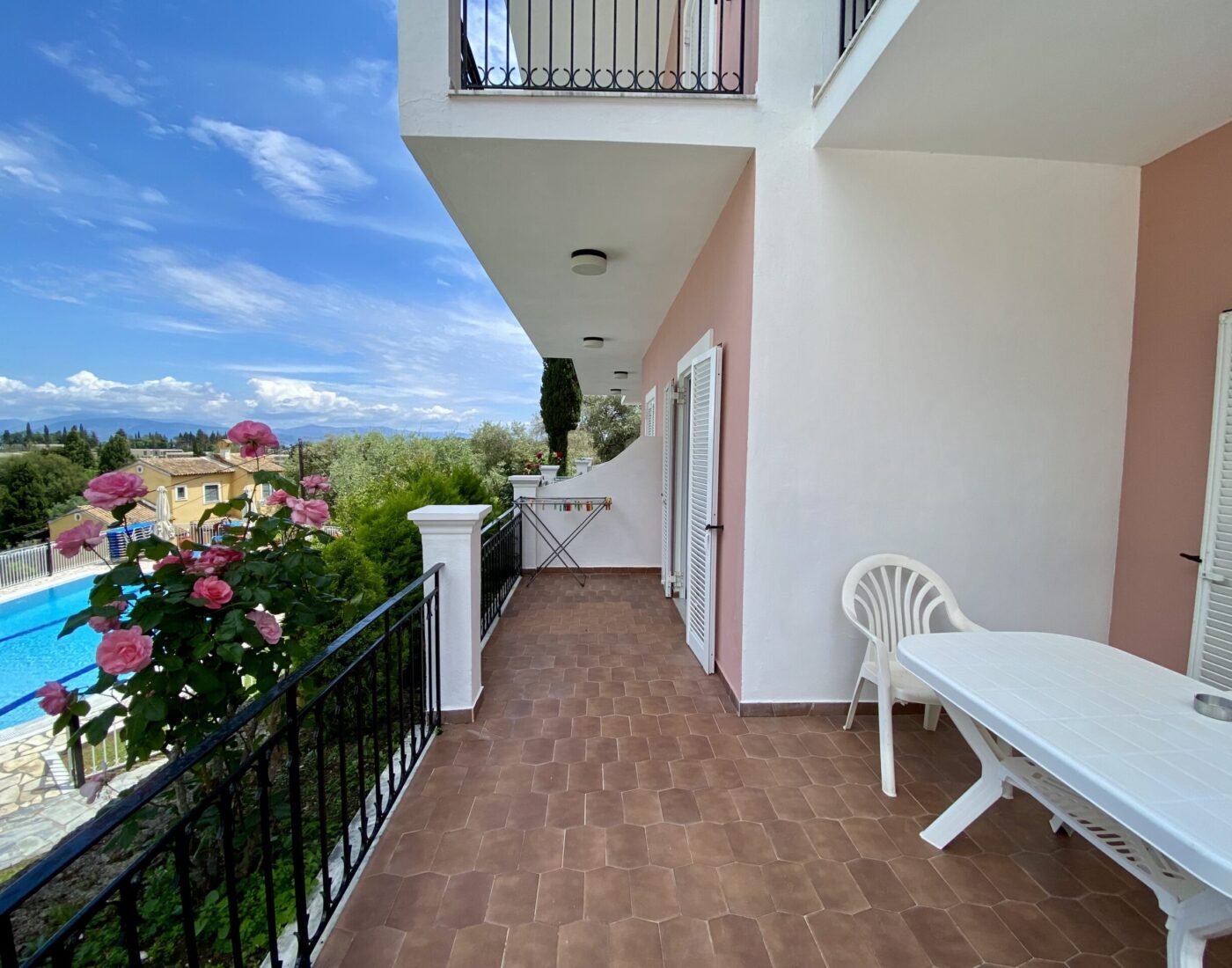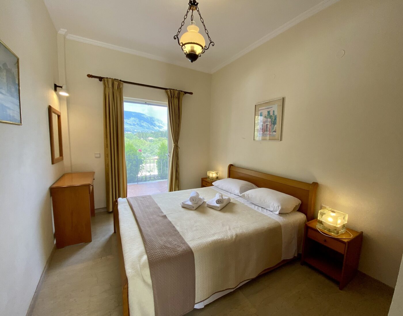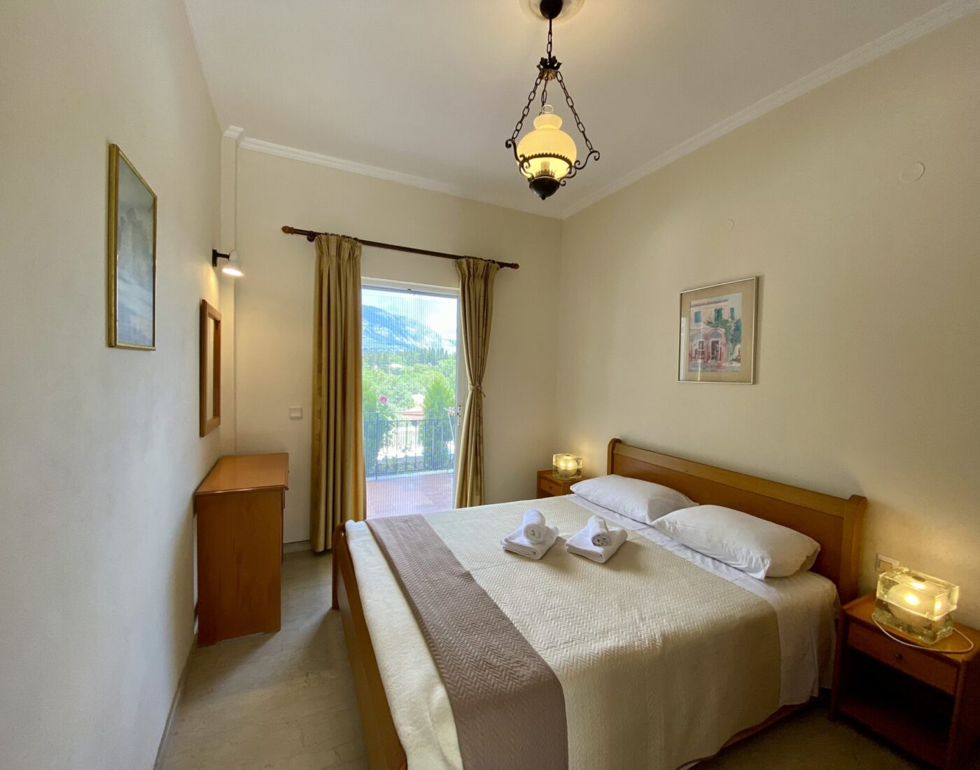 They are air-conditioned and have either a large double bed or 2 single beds and 2 sofa beds that can accommodate 1-4 people. They are air-conditioned, with a flat-screen TV and a balcony with a table and chairs overlooking the mountain and the pool